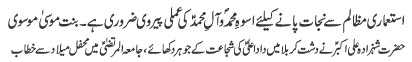 | ISLAMABAD, April 29: Alamgheer Ayyam al Huzn will be commemorated from 7-10 to mark the wasal of Ummal Momneen Hazrat Khadijatal Kubra (SA) - Basharat Imami | |||