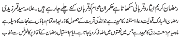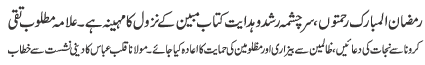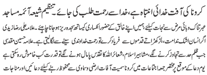 ISLAMABAD, April 21: Today Ayyam e Istaqbale Ramzan begins; supplications should be offered In order to have riddance from Covid 19 - TNFJ |
