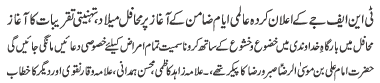 ISLAMABAD, July 13: Almgheer Ayyam e Aza commenced today to mark the martyrdom of Hazrat Imam Ali Ibne Mousa Raza (AS) |