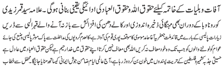 ISLAMABAD, July 18: Ayyame Taqwa announced by the Quaid e Millat e Jafariya Agha Syed Hamid Ali Shah Moosavi commenced, supplications offered for the cure of crona virus |