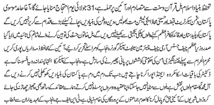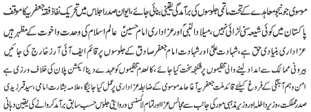 | ISLAMABAD, July 31: Today Youme Safeer e Hussainiat will be observed; protests will be held against controversial Buneyade Islam Bill | |||