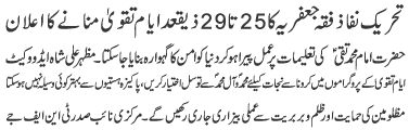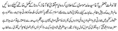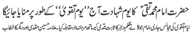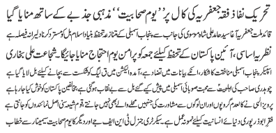 | ISLAMABAD, July 28: On the call of the TNFJ, Youme Sahabeyat was commemorated with great religious zeal and reverence | |||
