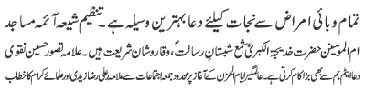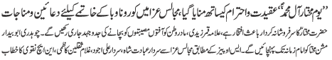 | ISLAMABAD, May 27: On the call of the Quaid e Millat e Jafariya Agha Syed Hamid Ali Shah Moosavi, Eidal Fitr was celebrated with simplicity | |||