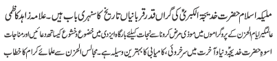ISLAMABAD, May 1: Aalmgheer Ayyam al Huzn begin to mark the Wasal of Ummal Momneen Hazrat Khadijatul Kubra (SA) |