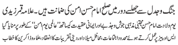 ISLAMABAD, May 9: The Waladat e Purnoor of the Grandson of the Holy Prophet, Hazrat Imam Hassan Mujtaba (AS) will be celebrated today as Youme Aman |