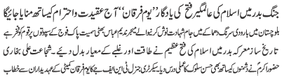 ISLAMABAD, May 12: Youme Furqan was observed throughout the country to mark the victory of Youme Ghazwa Badr with great respect and reverence |