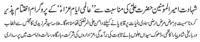 | ISLAMABAD, May 17: The display of unity on the Shahadat of Amir Al Momineen Hazrat Ali (AS) is appreciable - TNFJ | |||