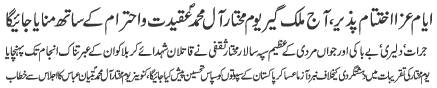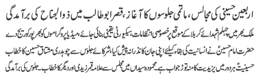 | RAWALPINDI, October 16: Wasaal Un Nabi SAWW and the martyrdom anniversary of Imam Hassan (AS) will be commemorated with great religious zeal and reverence | |||