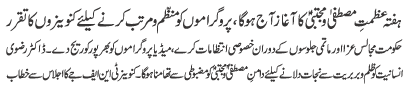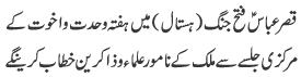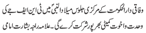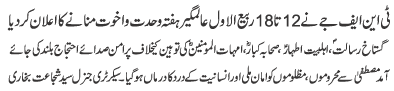 ISLAMABAD, October 29: TNFJ announced the observation of Alamgheer Hafta e Wahdat O Akhuwat from 12-18 Rabiul Awwal |