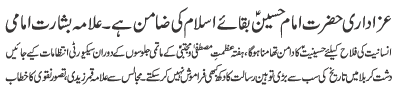 ISLAMABAD, October 14: Azadari e Imam Hussain (AS) is the guarantor of the survival of Islam - Basharat Imami |
