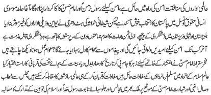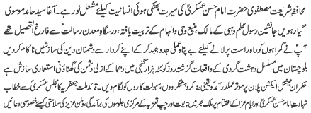 ISLAMABAD, October 27: The pious character of the protector of Shariat e Mohammadi, Imam Hassan Askari (AS) is the beacon of light for whole of humanity - Hamid Moosavi |