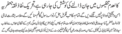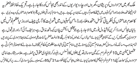 | ISLAMABAD, August 13: Throughout the country mourners are being tormented and forced to stop Majalis inside their homes and venues - TNFJ | |||