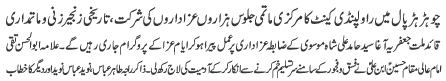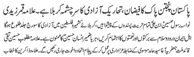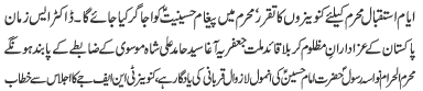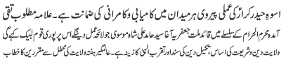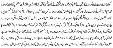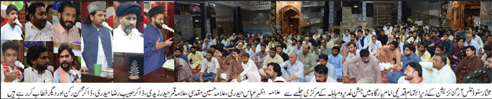 | ISLAMABAD, August 8: Muharram meeting of the TNFJ Rawalpindi Cantt held; Moosavi Code of Azadari will be adhered | |||