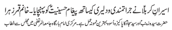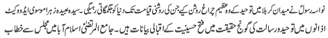 | ISLAMABAD, August 19: The Shahadat-e-Hussain (A.S.) is the source of a metaphor for freedom and liberty, truthfulness, determination, loyalty and perseverance, justice, equality, courage, greatness and character - Hamid Moosavi | |||