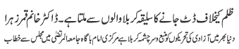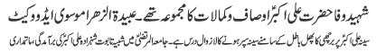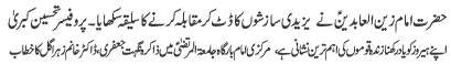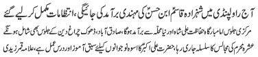 RAWALPINDI, August 28: Hazrat Imam Zainal Abideen (AS) taught a lesson of treating enemy humanely - Qamar Zaidi |