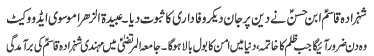 | ISLAMABAD, August 29: Life of Imam Zainal Abideen (AS) should be followed to establish peace - Basharat Imami | |||