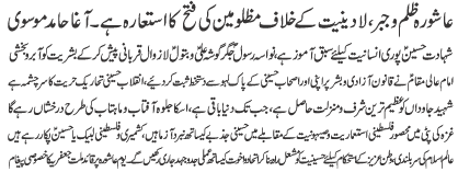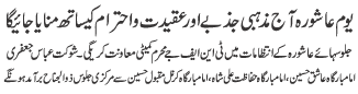 | ISLAMABAD, August 21: Likewise through out the world, Youme Ashura in Pakistan was observed with great religious zeal and reverence | |||
