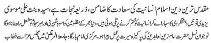 | ISLAMABAD, August 3: Walayat is the prerequisite of faith, announcement of Ghadeer is the completion of the religion | |||