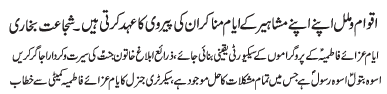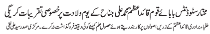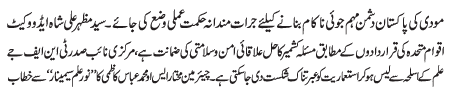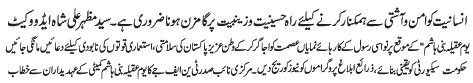 | ISLAMABAD, December 27: Nations by observing the days associated to their heroes, reiterate their stance to follow them - Shuja'at Bukhari | ||