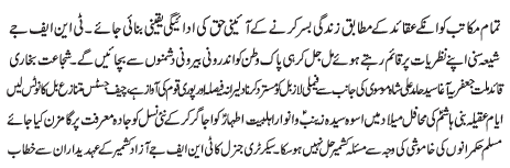 | ISLAMABAD, December 8: The right of living according to everyone beliefs is the basic constitutional right which must be ensured - TNFJ | ||