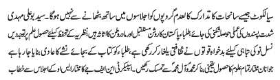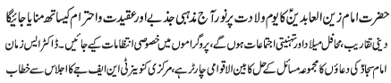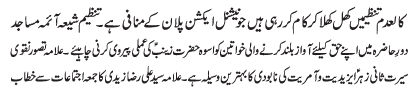 RAWALPINDI, December 21: In order to defeat the conspiracies of the enemy of Islam. life of Imam Sajjad (AS) must be followed - Qamar Zaidi |