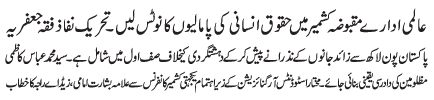 ISLAMABAD, December 15: International organizations must take notice of the plundering of basic human rights in occupied Kashmir - TNFJ |