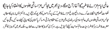 ISLAMABAD, December 18: Aalmi Ayyam e Azae Fatimiya start today; Majalis e Aza and Matami processions will be held |
