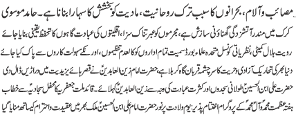 ISLAMABAD, January 4: Brutal killing of coal miners in Mach, Baluchistan is a heinous conspiracy; there exists no Shia-Sunni conflict in our country - Hamid Moosavi |