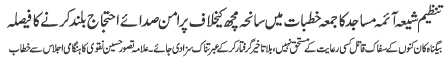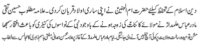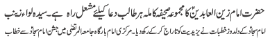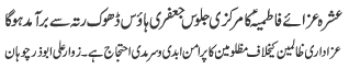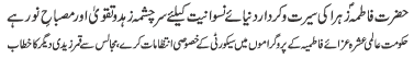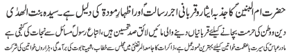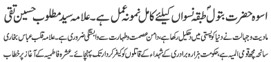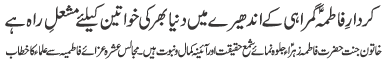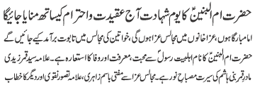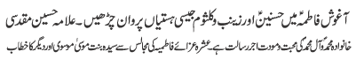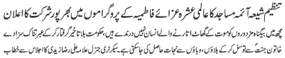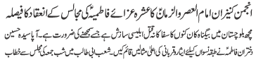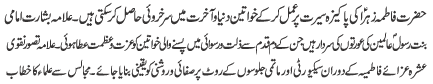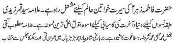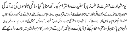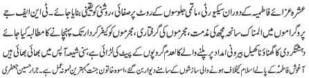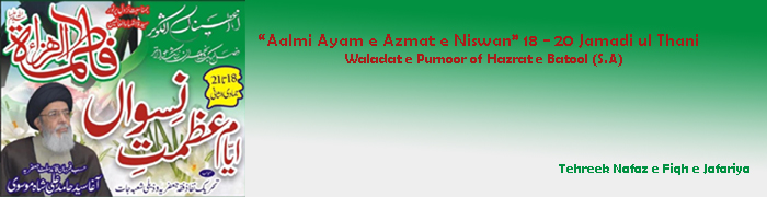 ISLAMABAD, January 30: TNFJ announced the observation of the "Aalmi Ayyam e Azmat e Niswan" from 18-20 Jamadiul Thani |