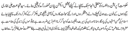 ISLAMABAD, January 13: The government should implement on the national action plan to complete operation Radal Fasad - Shuja'at Bukhari |