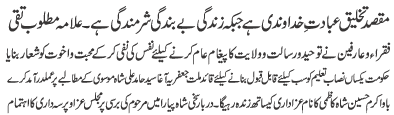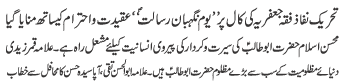 ISLAMABAD, June 8: The Tehreek Nafaz e Fiqh e Jafariya announced the observation of the "Youme Nigebaan e Risalat" on 29 Shawal |