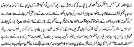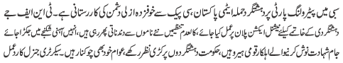 | ISLAMABAD, June 27: The archenemy is involved in the terrorist attack on the patrolling party in Sibi - TNFJ | |||