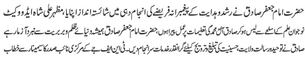 ISLAMABAD, June 1: Hazrat Imam Jafar Sadiq (AS) rendered great services for the propagation of Shariat e Mohammadi and Alawi ideology |