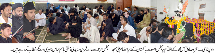 | RAWALPINDI, June 6: On the last day of Ashrae Sadiq e Aale Mohammad (AS), Majlis will be held while and Matami processions will brought out | |||