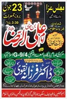 | ISLAMABAD, September 14: The martyrdom of Imam Ali Ibne Mousa Al Raza (AS) will be commemorated today with great respect and reverence | ||