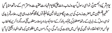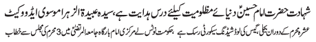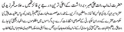 ISLAMABAD, September 6: Hazrat Zainab (SA) was on the highest level patience and forbearance - Qamar Zaidi |
