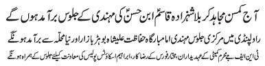 RAWALPINDI, July 29: The secretary general of Tehreek Nafaz e Fiqh e Jafariya will address to a press conference today |