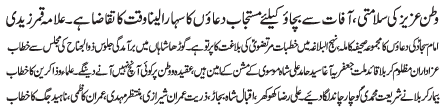 RAWALPINDI, August 27: It is the religious duty of every Pakistani to help generously those who are effected by the current floods - TNFJ |