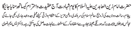 ISLAMABAD, August 24: The martyrdom anniversary of Imam Zain Al Abideen (AS) will be commemorated today with great religious zeal and reverence |