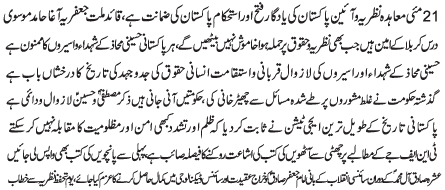 ISLAMABAD, May 22: Moosavi-Junejo agreement of 21st May 1985 is the memoir of the unforgettable victory of Pakistan’s ideology and the constitution while guarantees strength for Pakistan - Hamid Moosavi |