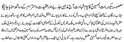 | ISLAMABAD, September 3: The martyrdom of Hazrat Sakina Bintal Hussain (SA) will be commemorated with great religious zeal and reverence | ||
