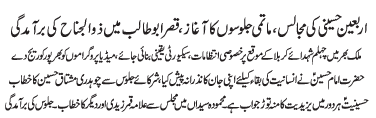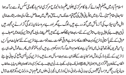 | ISLAMABAD, September 16: Today main procession of Chehlum Shuhadae Karbala will be brought out in Islamabad | ||