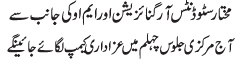 ISLAMABAD, August 14: Conveners of Aalmi Ashrae Beemare Karbala (AS) has been nominated; Today Majalis O Matami Processions will take place |