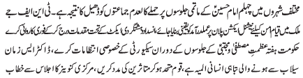 ISLAMABAD, August 26: Special security measures should be ensured during the programs of "Ashrae Shaheeda e Zindaan" - TNFJ |