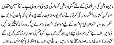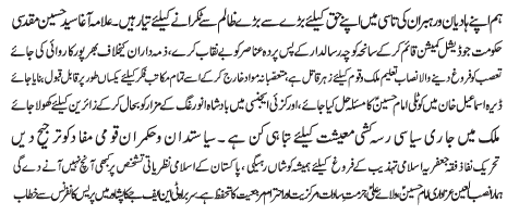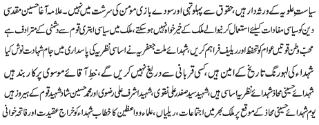 ISLAMABAD, December 31: We are the heirs of Alawi politics; it is not in the nature of the faithful to withdraw or to bargain over their rights - Agha Muqadasi |