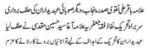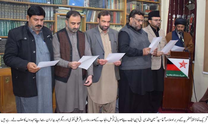 RAWALPINDI, December 16: Allama Baqir Naqvi as president of the TNFJ Punjab and several of his cabinet members have been nominated; Oath taking ceremony held in the Markaz e Tasheyyo |