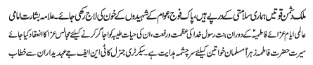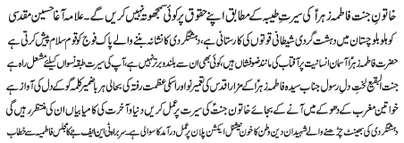 ISLAMABAD, December 9: Hazrat Fatima Zahra (SA) taught an eternal lesson of taking stand for oppressed - Allama Agha Ali Hussain Najafi |
