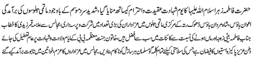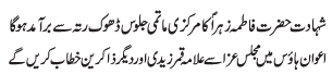 RAWALPINDI, December 27: Today Youme Shahadat Khatoon e Jannat, Hazrat Fatima Zahra (SA) will be commemorated with great religious zeal and reverence |