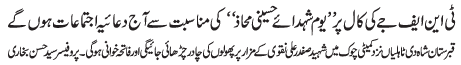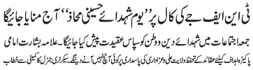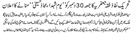 ISLAMABAD, December 30: On the call of the TNFJ, today "Youme Shuhadae Hussaini Mohaz" will be observed |