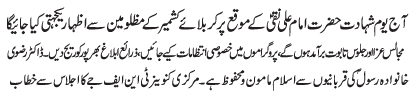 | RAWALPINDI, February 6: The martyrdom anniversary of Imam Ali Naqi (AS) was observed; expression of solidarity with Karbalae Kashmir displayed | ||